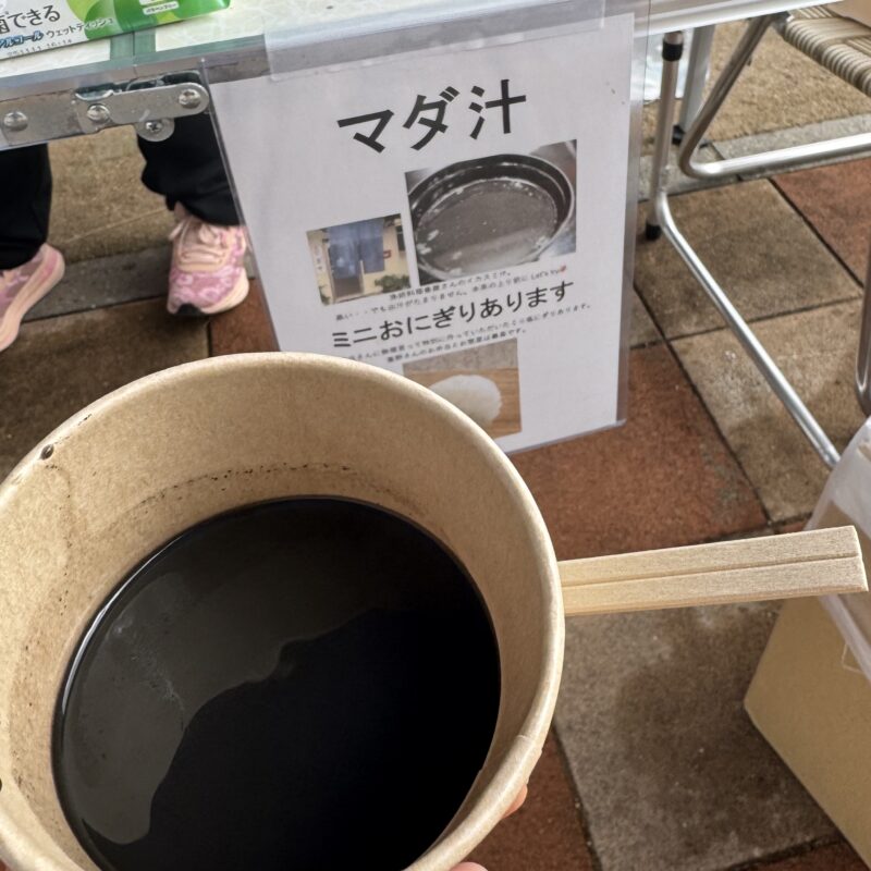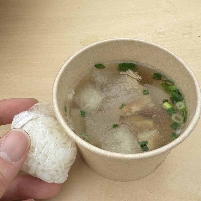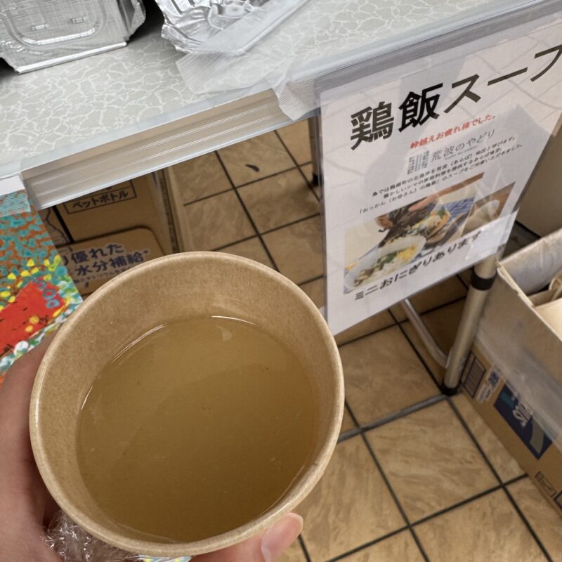 その中の、暖かい汁物の提供は非常に沁みました。また汁物と一緒に小さなおにぎりの提供もあるためエネルギー補給も可能です。