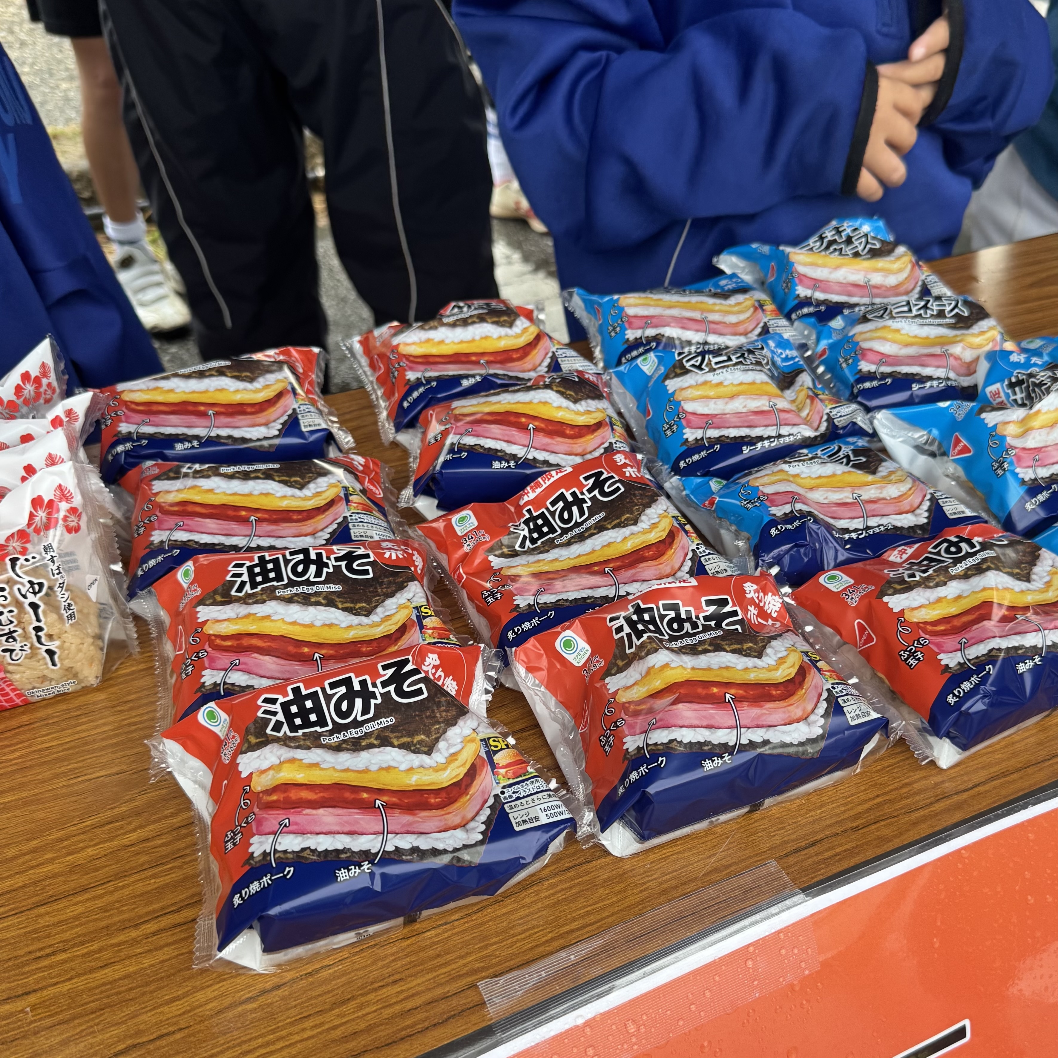 エイドはかなり豊富です。スパムおにぎり、沖縄そば、サーターアンダギー、もずくスープ、黒糖など沖縄名物がかなり多く提供されます。