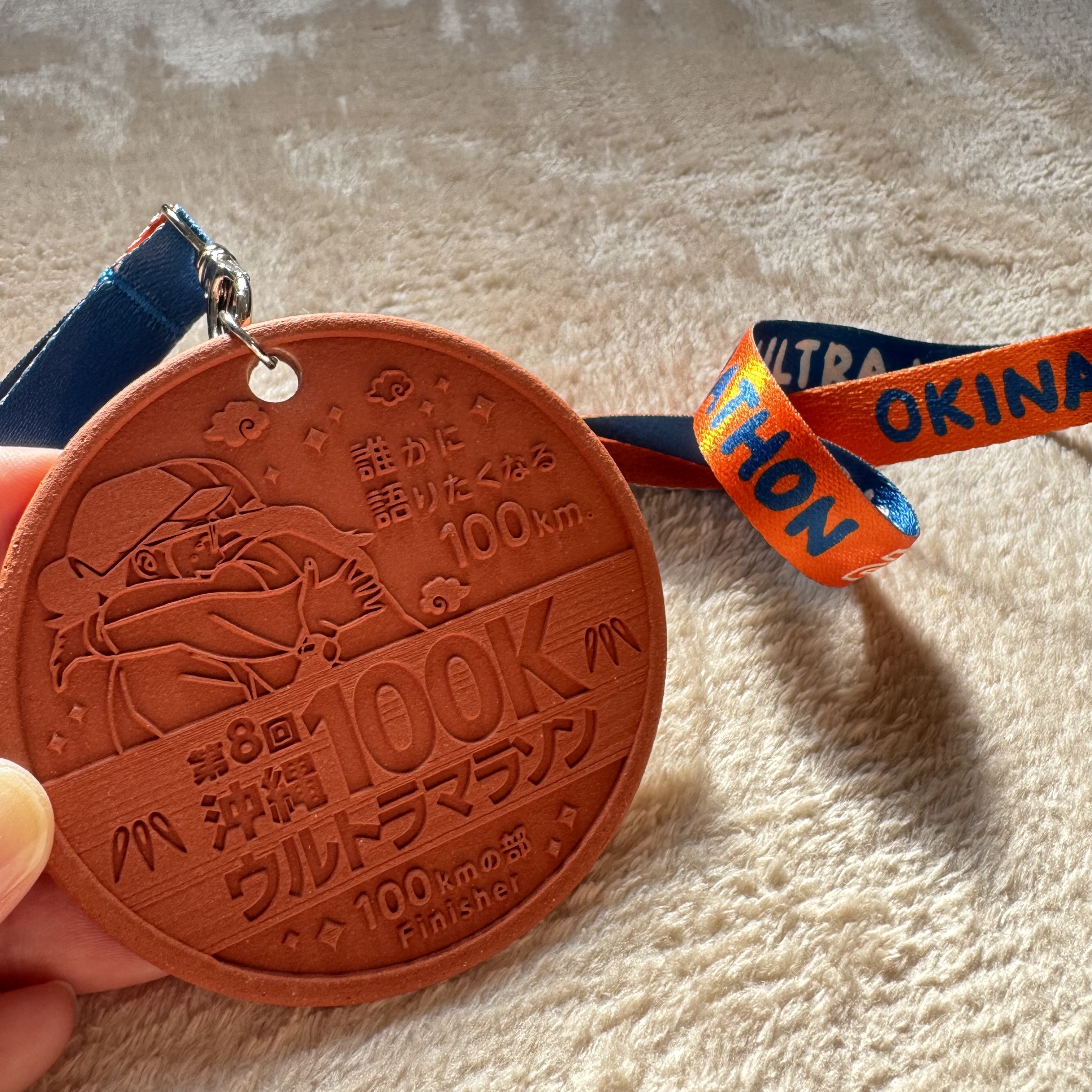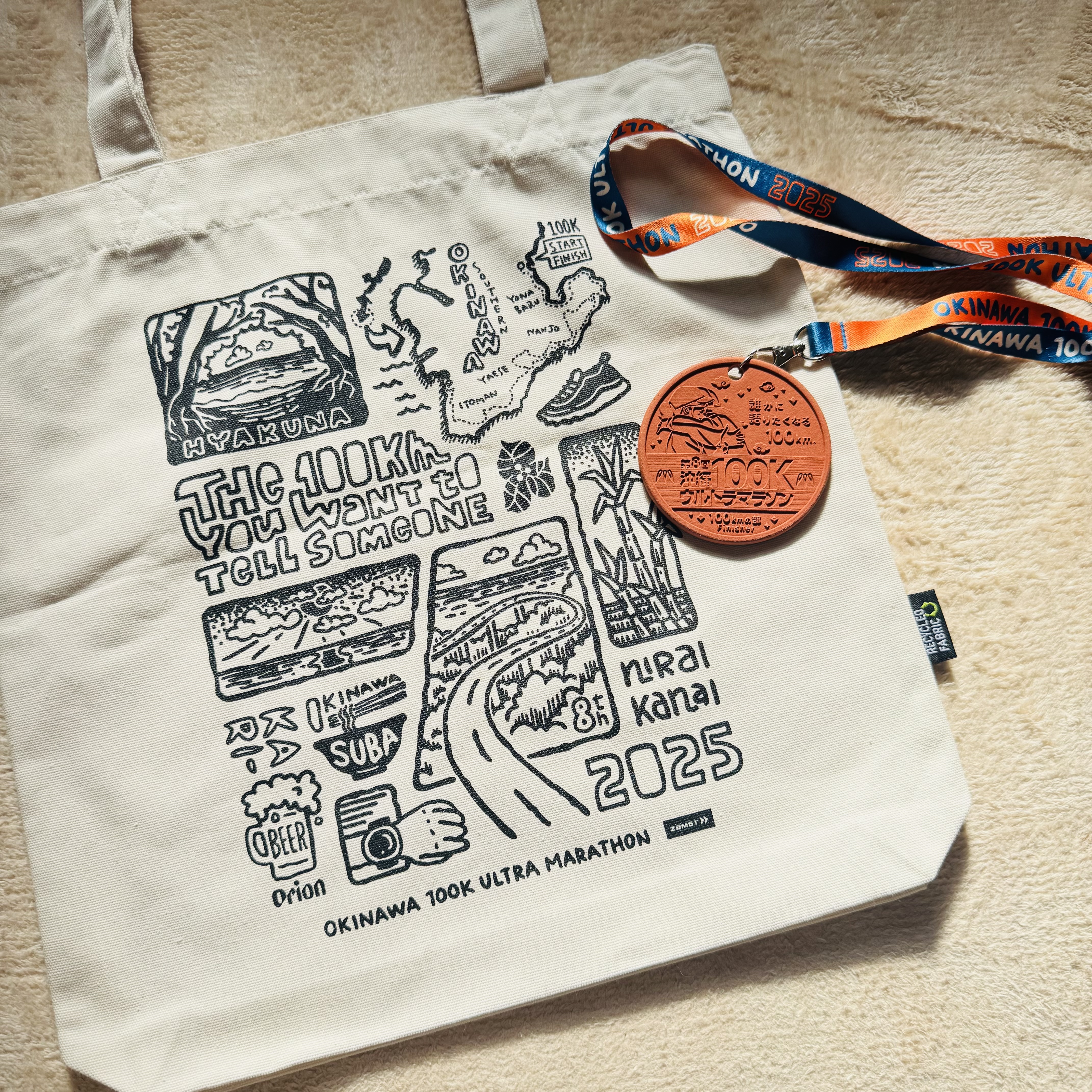 完走賞は完走メダルとトートバッグです。完走メダルは沖縄文化の象徴である「やちむん」(伝統工芸陶器)でできています。